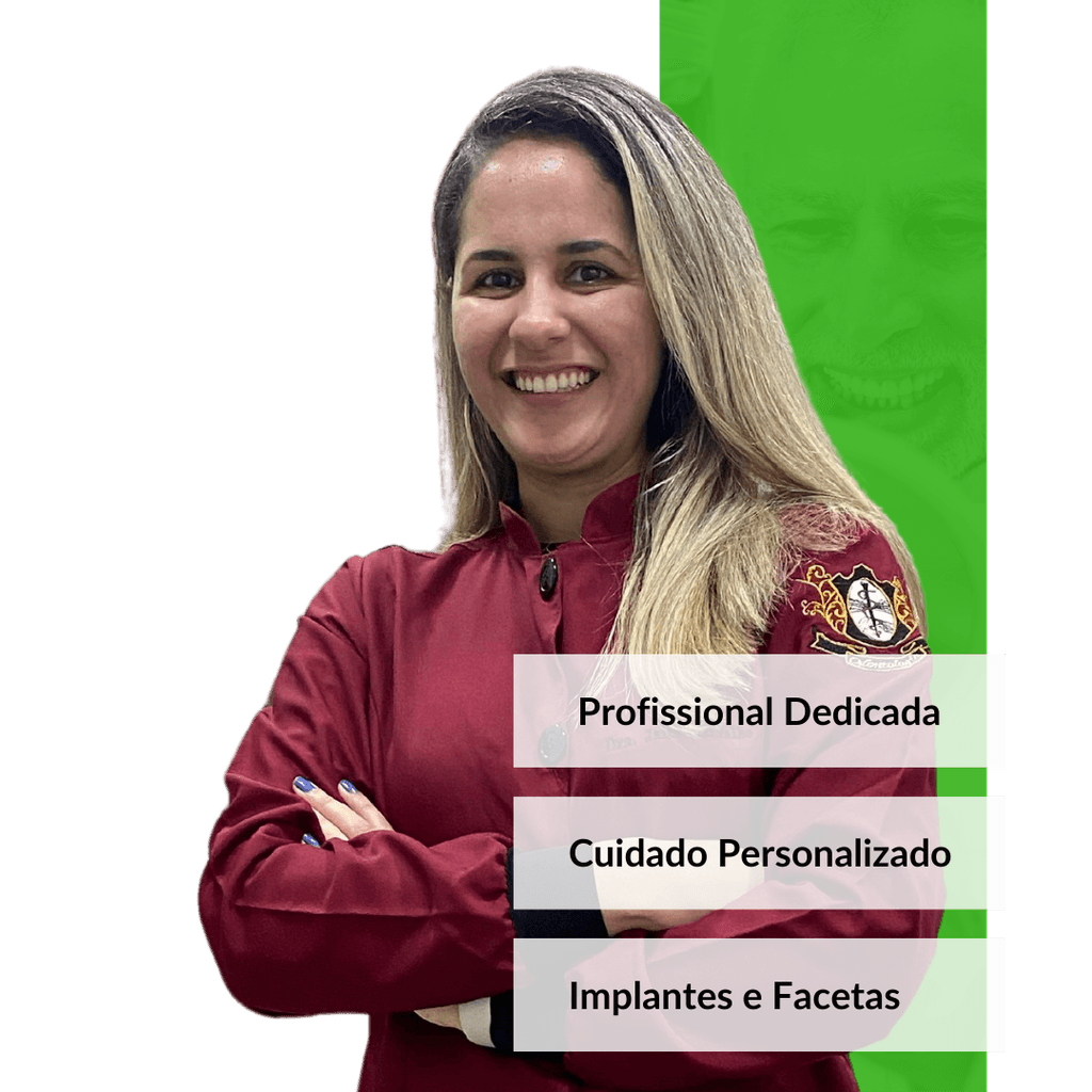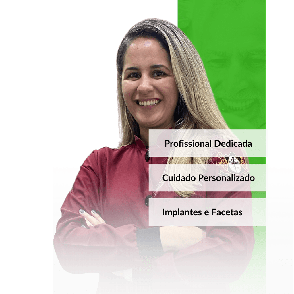 Cada sorriso é tratado com cuidado e atenção personalizados. Sou altamente qualificada e comprometida com a excelência, ofereço cuidados odontológicos em facetas e implantes dentários que vão além das expectativas, proporcionando uma experiência única e satisfatória para cada paciente.